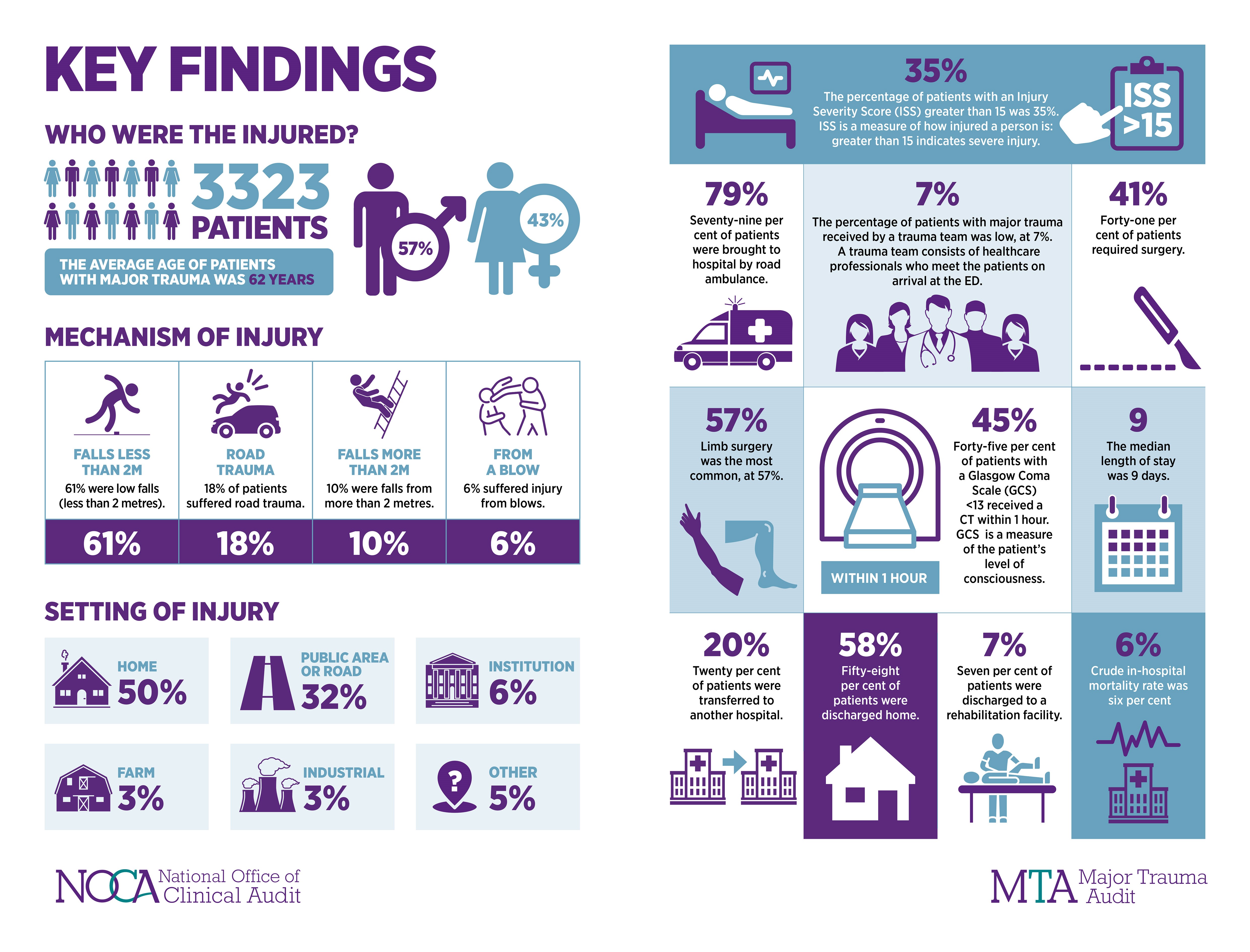 Major Trauma Audit (MTA) is a patient safety initiative that aims to increase quality assurance and improvement initiatives in the area of patient trauma care, through the delivery of high-quality data. The ongoing care and outcome of critically ill patients requires a multi-disciplinary, multi-institutional, coordinated and integrated system approach — underpinning that approach is quality assurance enabled by quality data gathering.